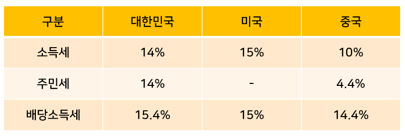미국 투자의 경우에도 국내 배당소득세와 비슷하게 15%를 제외하기 때문에 국내 배당금, 미국 배당금 둘 다 소득세는 차이가 없다고 보시면 됩니다.