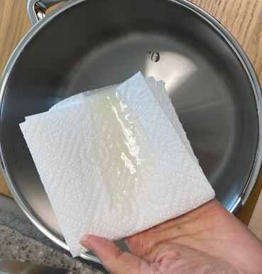 - 식용유를 키친타월에 묻혀서 여러 번 닦아줍니다.