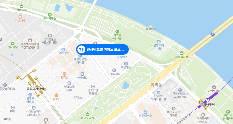 여의도 국회의사당 역에서 10분 정도 걸으시면 됩니다.