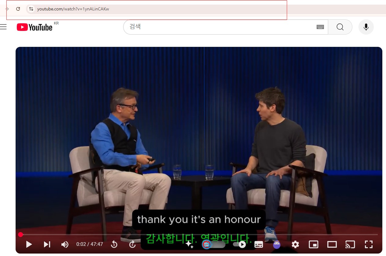 - 유튜브 링크 복사: 한국어로 듣고 싶은 해외 유튜브 영상의 링크를 복사합니다.