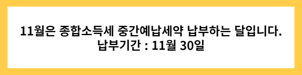 11월 말까지 종합소득세 중간예납할 수 있는 기간입니다.