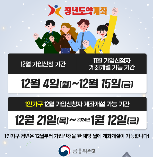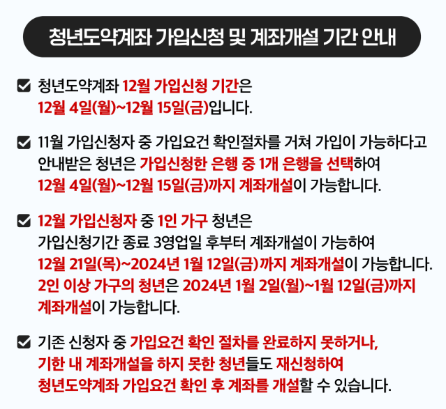 - 12월 가입신청 기간, 11월 가입신청자 계좌개설 가능 기간