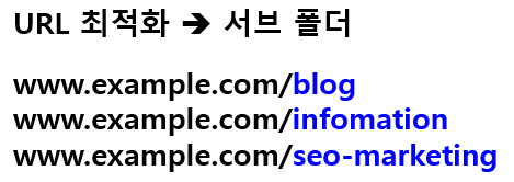 서브 폴더 예시는 www.example.com/blog, www.example.com/information, www.example.com/seo-marketing 형식입니다.